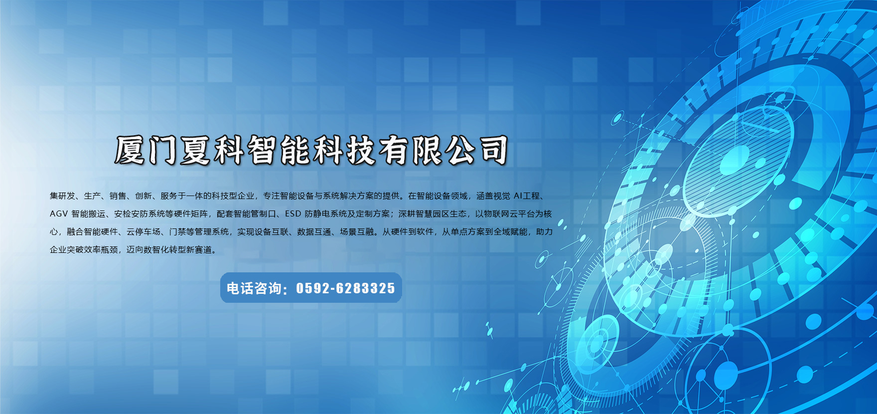 廈門夏科智能科技有限公司自2008年成立以來,集研發、生產、銷售、創新、服務為一體的AI工程、AGV、安檢安防設備、自動化設備、智能管制口系統、智能巡檢系統、防靜電設備、智能ESD系統及方案提供商,以及智慧園區物聯網云平臺、智能硬件、云停車場、云門禁等系統的研發和應用,公司采用全程質量管理,保證良好的供貨質量和完善的售后服務,大限度的滿足客戶需求。